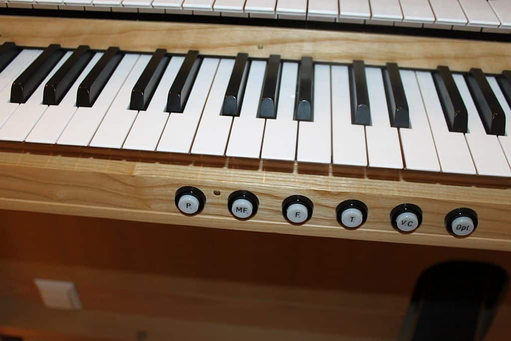 Speelhulpen: 1 vrije combinatie, 4 vaste combinaties (p – mf – f – tutti), Automatische Pedaalomschakeling, Tongwerken af.