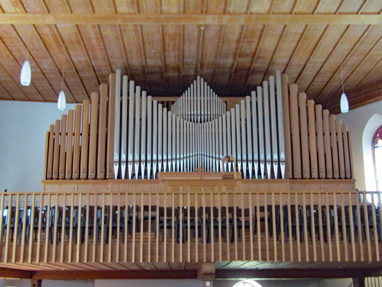 Koppeln, Spielhilfen: –Koppeln:III – I, III – II, II – 1,III – P, II – P, I – P –4 freie Kombinationen –4 appels (jeux de combinaison) Ein/Aus der mit * markierten Register wenn sie gezogen sind. 1 appel-Tritt pro Werk, 2016 elektronische Setzeranlage.