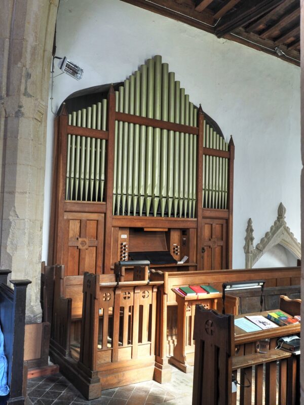 GREAT (C – g3) 56 TOETSEN: Open Diapason 8′, Echo Dulciana 8′ TC, Claribel 8′, Principal 4′.