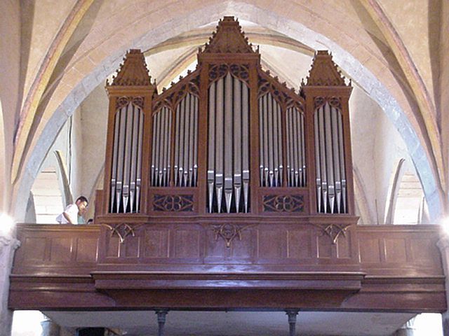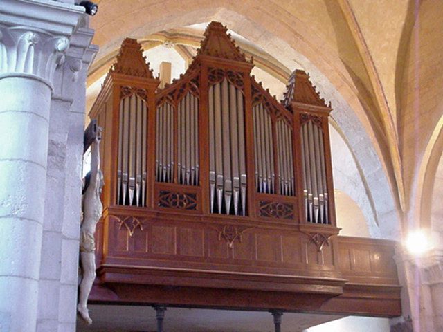 Grand Orgue: C – f3 Bourdon 16′, Montre 8′, Bourdon 8′, Gambe 8′, Prestant 4′, Flûte 4′, Nazard 2 2/3′, Doublette 2′, Cornet 5 rangs (discant), Fourniture 4 rangs (1 1/3′), Trompette 8′, Clairon 4′ (1998), Tremblant Doux.