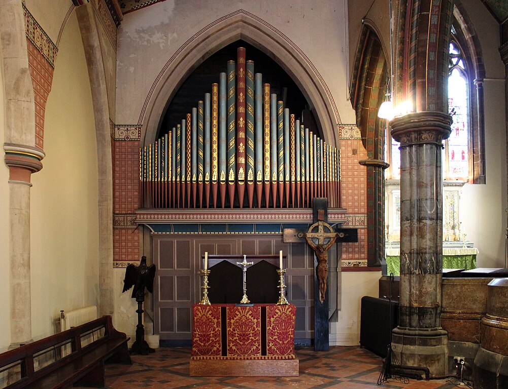 Henry Willis bouwde in 1869 een nieuw mechanisch sleepladen-orgel met een barkermachine, gedecoreerde frontpijpen, 25 stemmen, 2 manualen en een vrij pedaal voor de Church of Saint Margaret of Antioch (Merseyside) UK. Het instrument verkeert in slechte staat en is onbespeelbaar. Het pedaalklavier is radiaal, maar niet concaaf.