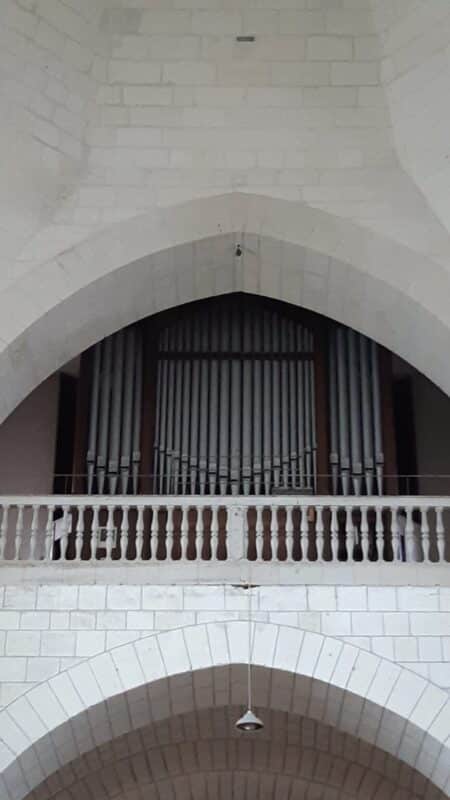 Charles Mutin bouwde in 1922 een nieuw mechanisch sleepladen-orgel met 26 stemmen, 2 manualen en een vrij pedaal voor de Église Saint-Ours in Loches (Indre-et-Loire (37)) Frankrijk. In 1970 is het instrument gerestaureerd door Joseph Beuchet. Daarbij is de tractuur van het pedaal elektrisch gemaakt.