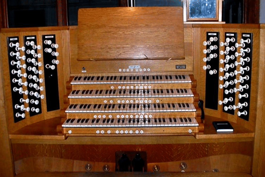 8 thumb pistons to Great, Swell, Solo; 6 to Choir;