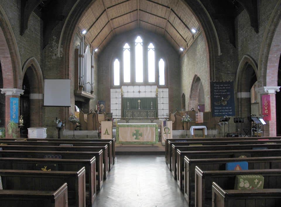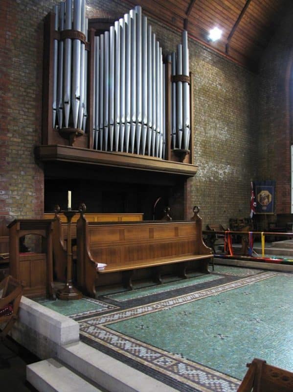 Great: C – g3 Large Open Diapason 8′, Small Open Diapason 8′, Clarabel’A 8′, Dulciana 8′, Principal 4′, Harmonic Flute 4′, Twelfth 2 2/3′, Fifteenth 2′, Trumpet 8′.
