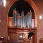 Great Organ: C – a3 Open Diapason 8′, Claribel Flute 8′, Dulciana 8′, Principal 4′, Harmonic Flute 4′, Twelfth 2 2/3′, Fifteenth 2′, Seventeenth 1 3/5′, Mixture 3 ranks, Trumpet 8′.