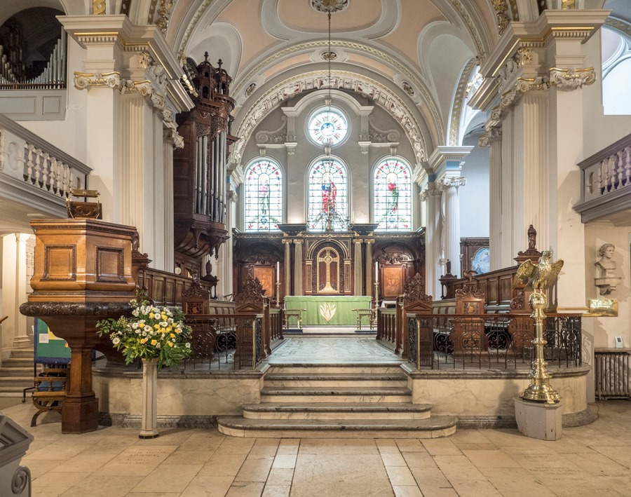 Nave Organ: C – c4 Open Diapason 8′, Principal 4′ – 2000, Fifteenth 2′ – 2000, Mixture 4 ranks – 2000, Trumpet 8′ – 1964.