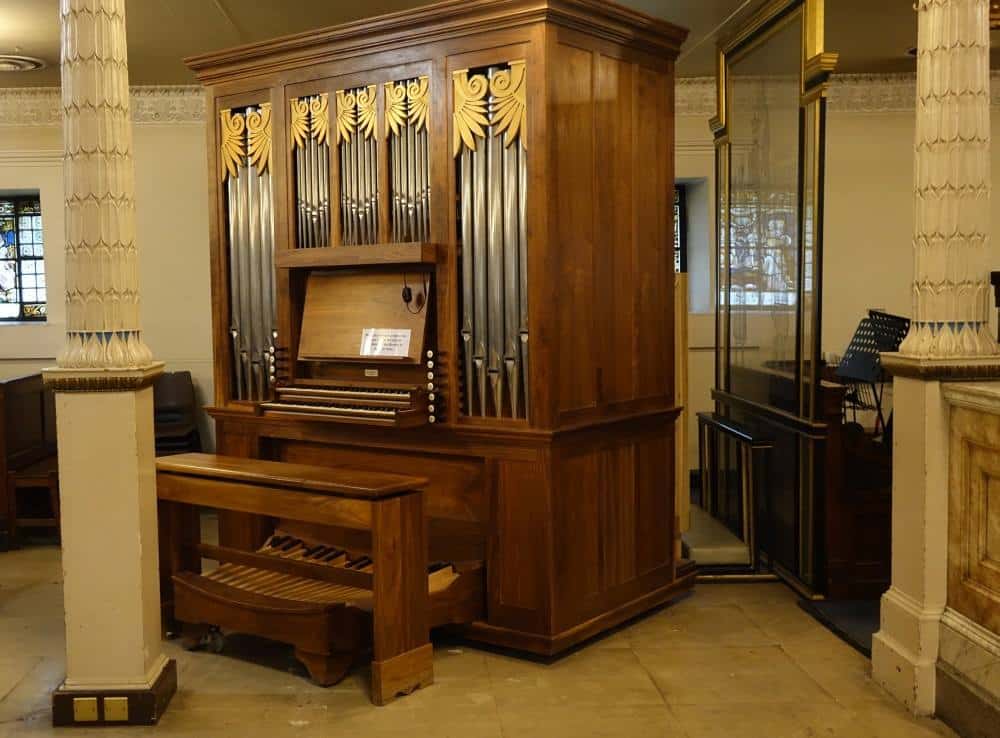 Peter Collins bouwde in 2001 een nieuw Chamber Organ met 2 manualen, Radiaal concaaf pedaalklavier, mechanische tractuur en sleepladen voor de Church of Saint Pancras in London (Middlesex). Het orgel is transponeerbaar en heeft 2 standen. a’ = 415 of 440 Hz.