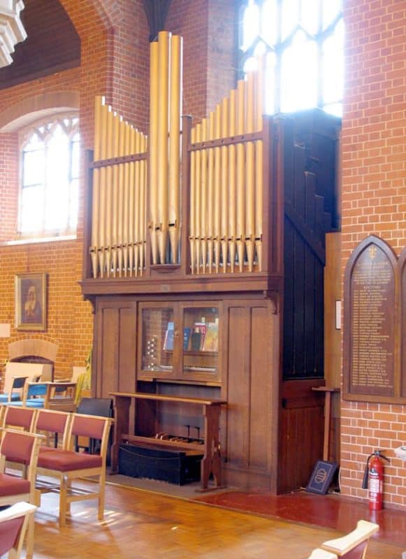 Manual: C – g3 (in zwelkast) Open Diapason 8′ (niet in zwelkast), Stopped Diapason (bass) 8′, Stopped Diapason (treble) 8′, Claribel 8′ (Ten C), Dulciana 8′ (Ten C), Principal 4′, Wald Flute 4′, Fifteenth 2′, Cornopean 8′.
