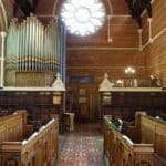 CHOIR (C – g3) 56 TOETSEN: Clarabella 8′, Dulciana 8′, Flute 4′, Fifteenth 2′ (1980), Mixture II (19.22 – in 1980 geplaatst), Cremona 8′ TC.