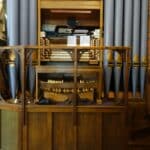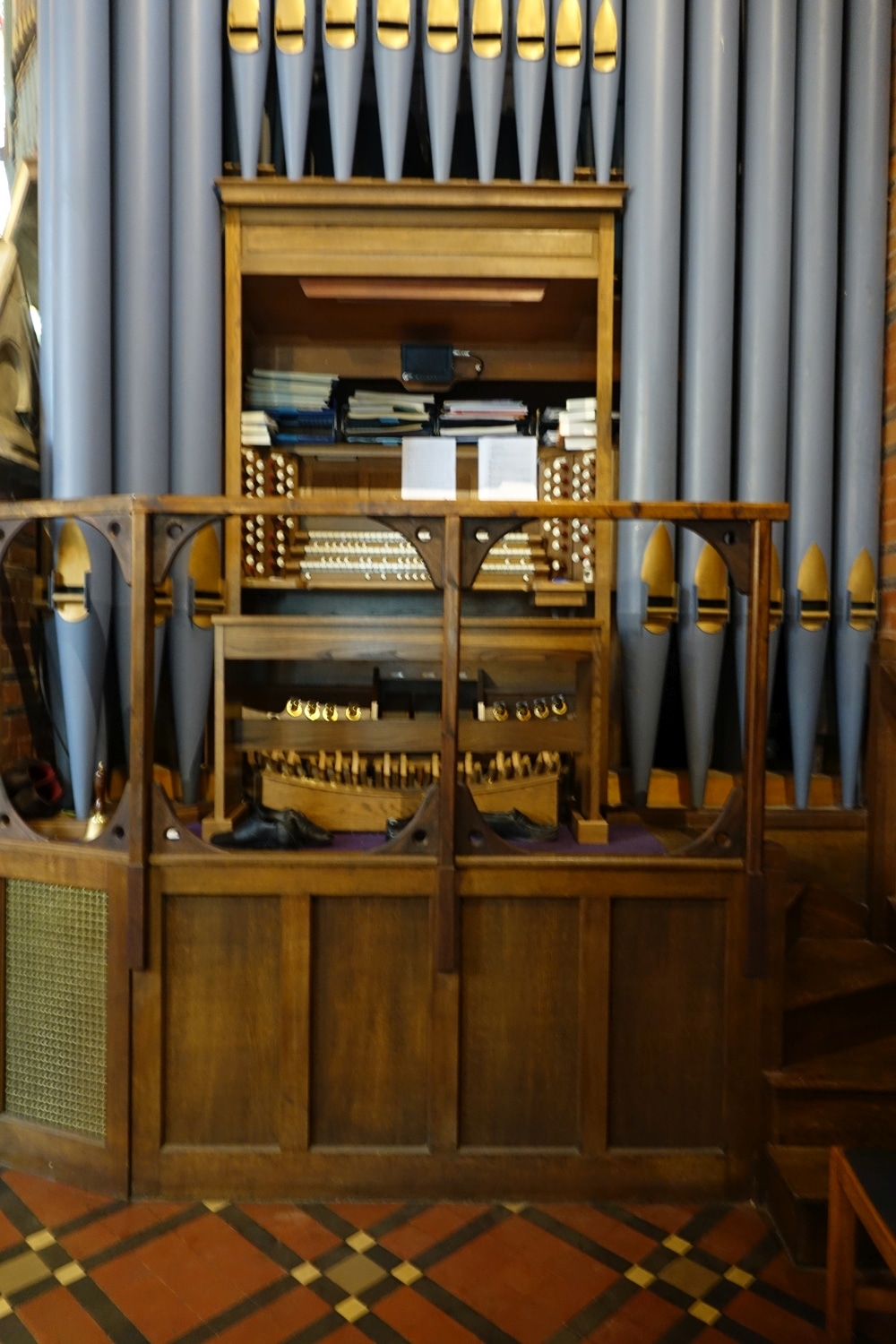 PEDAL (C – f1) 30 TOETSEN: Geigen 16′ (1980), Bourdon 16′, Bass Flute 8′ (1980), Principal 8′ (1980), Fifteenth 4′ (1980), Trombone 16′.