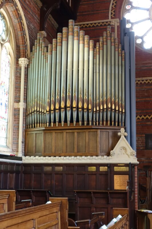 J.C. Bishop bouwde in 1825 een nieuw mechanisch sleepladen-orgel met gedecoreerde frontpijpen, 29 stemmen, 3 manualen en een vrij pedaal voor de Christ Church in London (Marylebone). J.C. Bishop bouwde het instrument in 1980 om en plaatste het over naar de Highgate School Chapel in London (Highgate) Middlesex, UK. Hierbij werd de registertractuur en de toetstractuur van het pedaal elektrisch gemaakt en de dispositie gewijzigd. B.C. Shepherd & Sons plaatste in 1998 pistons met speelhulpen en voerde reparaties uit. Het pedaalklavier is radiaal concaaf.