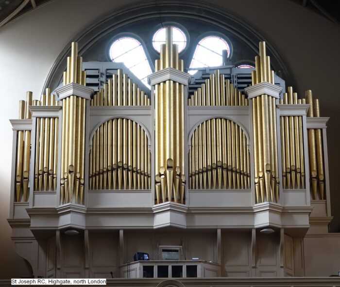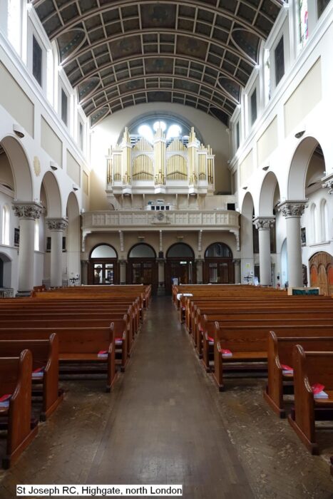 William Hill & Sons heeft in 1898 een nieuw orgel gebouwd voor de Northern Polytechnic School in Londen. In 1948 is het pneumatische kegelladen-orgel overgeplaatst naar de Roman Catholic Church of Saint Joseph in London (Highgate) Middlesex. In deze kerk stond een orgel van Alfred Monk, dat is afgebroken. Het pedaalklavier is radiaal concaaf.