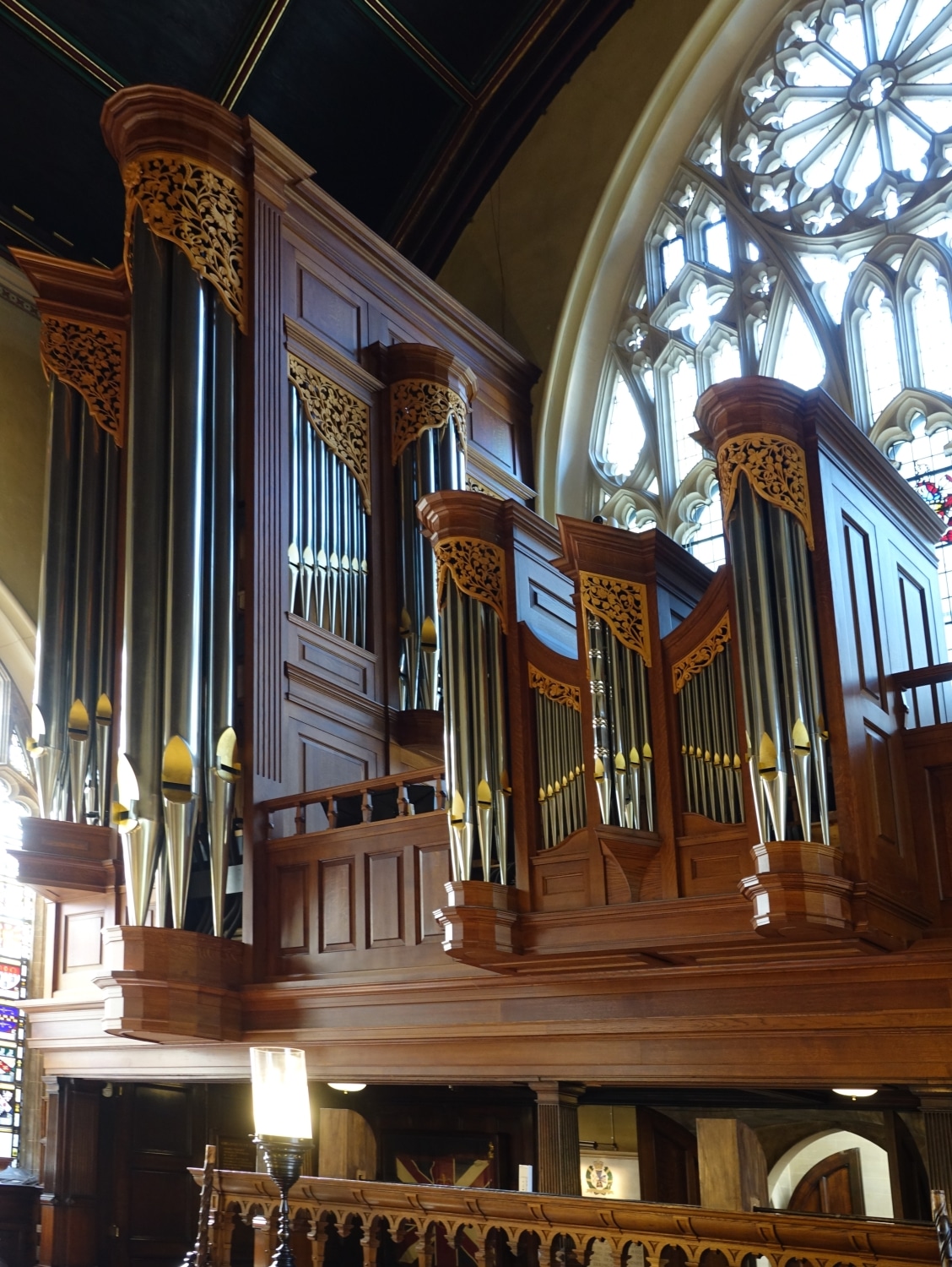 SWELL ORGAN (C – a3) 58 TOETSEN: Open Diapason 8′, Gedeckt 8′, Viola 8′, Voix Celeste 8′, Principal 4′, Harmonic Flute 4′, Octave 2′, Sesquialtera 2 ranks, Mixture 3 ranks, Double Trumpet 16′, Trumpet 8′, Hautboy 8′, Clarion 4′, Tremulant.