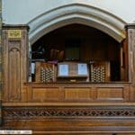 GREAT (C – a3) 58 TOETSEN: Double Open Diapason 16′, Open Diapason I 8′, Open Diapason II 8′, Stopped Diapason 8′, Claribel Flute 8′, Principal 4′, Flute Harmonique 4′, Twelfth 2 2/3′, Fifteenth 2′, Sesquialtera 4 ranks, Trombone 16′, Tromba 8′, Clarion 4′.