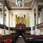 Great Organ: C – f3 Double Open Diapason 16′, Open Diapason I 8′, Open Diapason II 8′, Stopped Diapason 8′, Octave 4′, Flute (Stopped) 4′, Twelfth 3′, Fifteenth 2′, Flageolet 2′, Sesquialtera 3 ranks, Mixture 2 ranks, Posaune 8′, Clarion 4′.