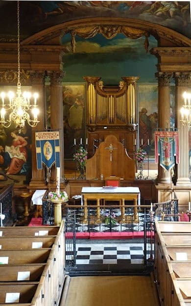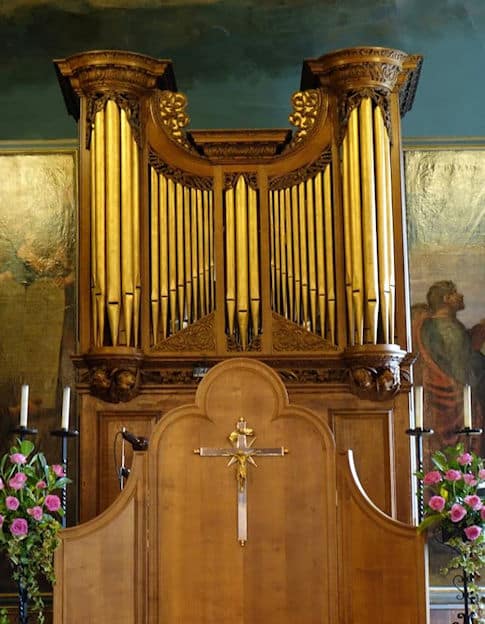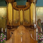 Swell: Contra G – d3 Open Diapason 8′, Stopt Diapason 8′, Principal 4′, Nason Flute 4′, Fifteenth 2′, Cornet II treble, Trumpet 8′.