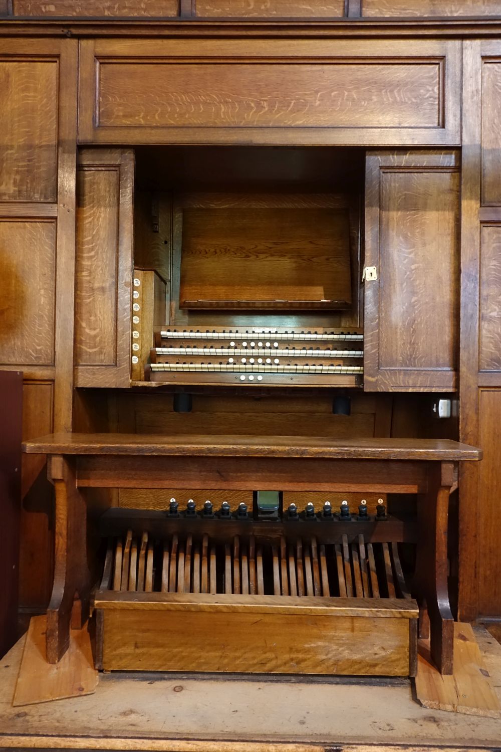 reversible thumb pistons, Swell to Great, Great to Pedal;