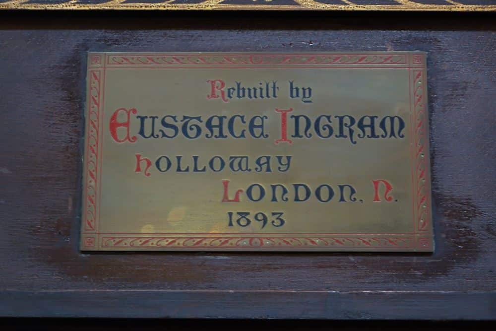 Pedal: C – f1 Open Diapason 16′, Bourdon 16′, Violoncello 8′.