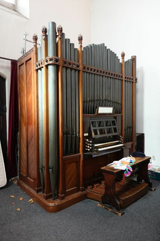 Swell: C – g3 (56 toetsen) in zwelkast Lieblich Gedact 8′, Viol di Gamba 8′, Gemshorn 4′, Oboe 8′.