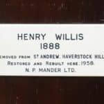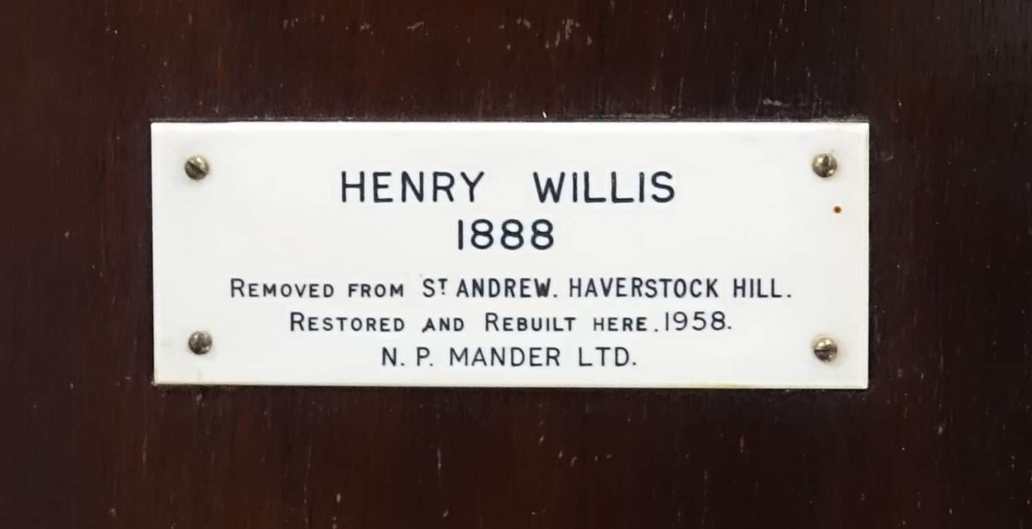 Henry Willis bouwde in 1888 een nieuw mechanisch sleepladen-orgel voor de Church of Saint Andrew, Haverstock Hill, in London (Middlesex) UK. In 1958 is het door Noel P. Mander gerestaureerd en omgebouwd. Daarna werd het overgeplaatst naar de Church of Saint Stephen & Saint Thomas in London (Shepherds Bush) Middlesex, UK. Het instrument heeft 10 stemmen, 2 manualen en een vrij pedaal. Het pedaalklavier is radiaal concaaf. Helaas verkeert het orgel in slechte staat. Het is nog wel bespeelbaar.