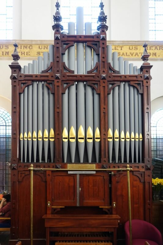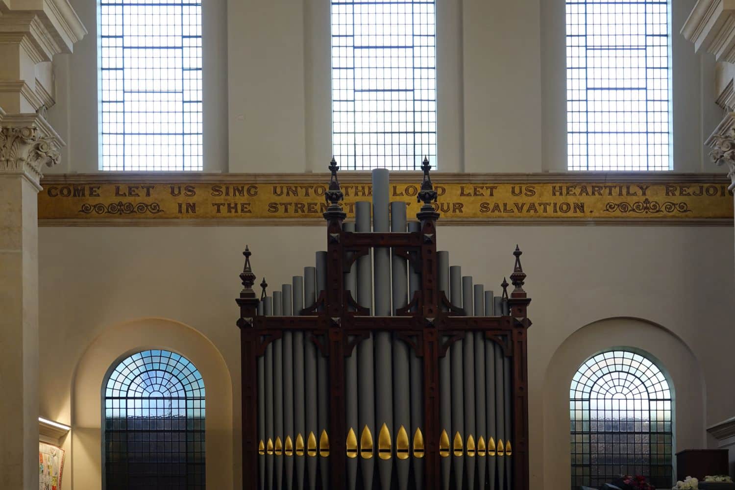 Great: C – c4 (61 toetsen) Bourdon 16′, Open Diapason 8′, Hohl Flute 8′, Viole 8′, Harmonic Flute 4′, Principal 4′, Twelfth 2 2/3′, Fifteenth 2′, Great Cornet V, Trumpet 8′.