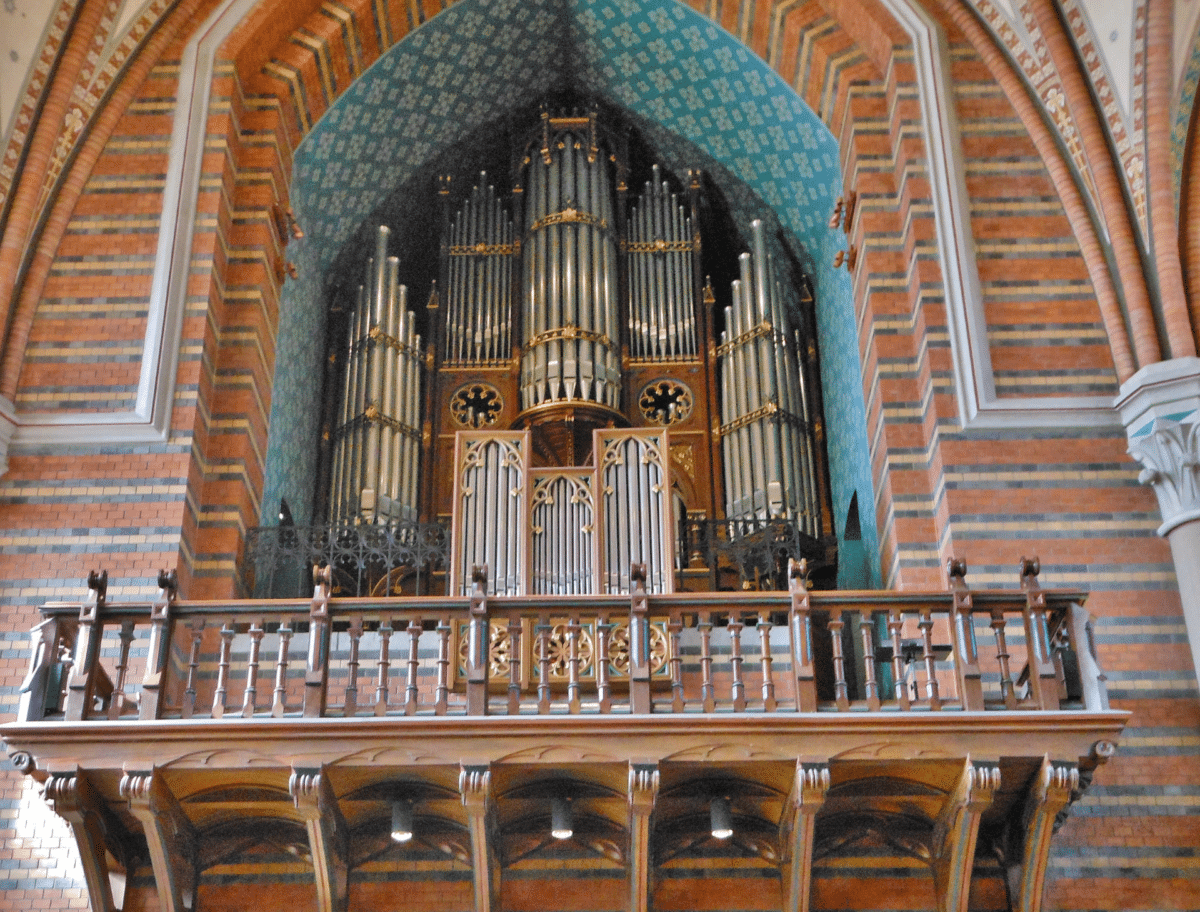 SVÄLLVERK: Flûte Harmonique 8′, Italiensk Principal 8′, Salicional 8′, Voix Céleste 8′, Oktava 4′, Traversflöjt 4′, Spetskvint 2 2/3′, Waldflöjt 2′, Ters 1 3/5′, Mixtur 4 chor, Fagott 16′, Trumpet Harmonique 8′, Oboe 8′.