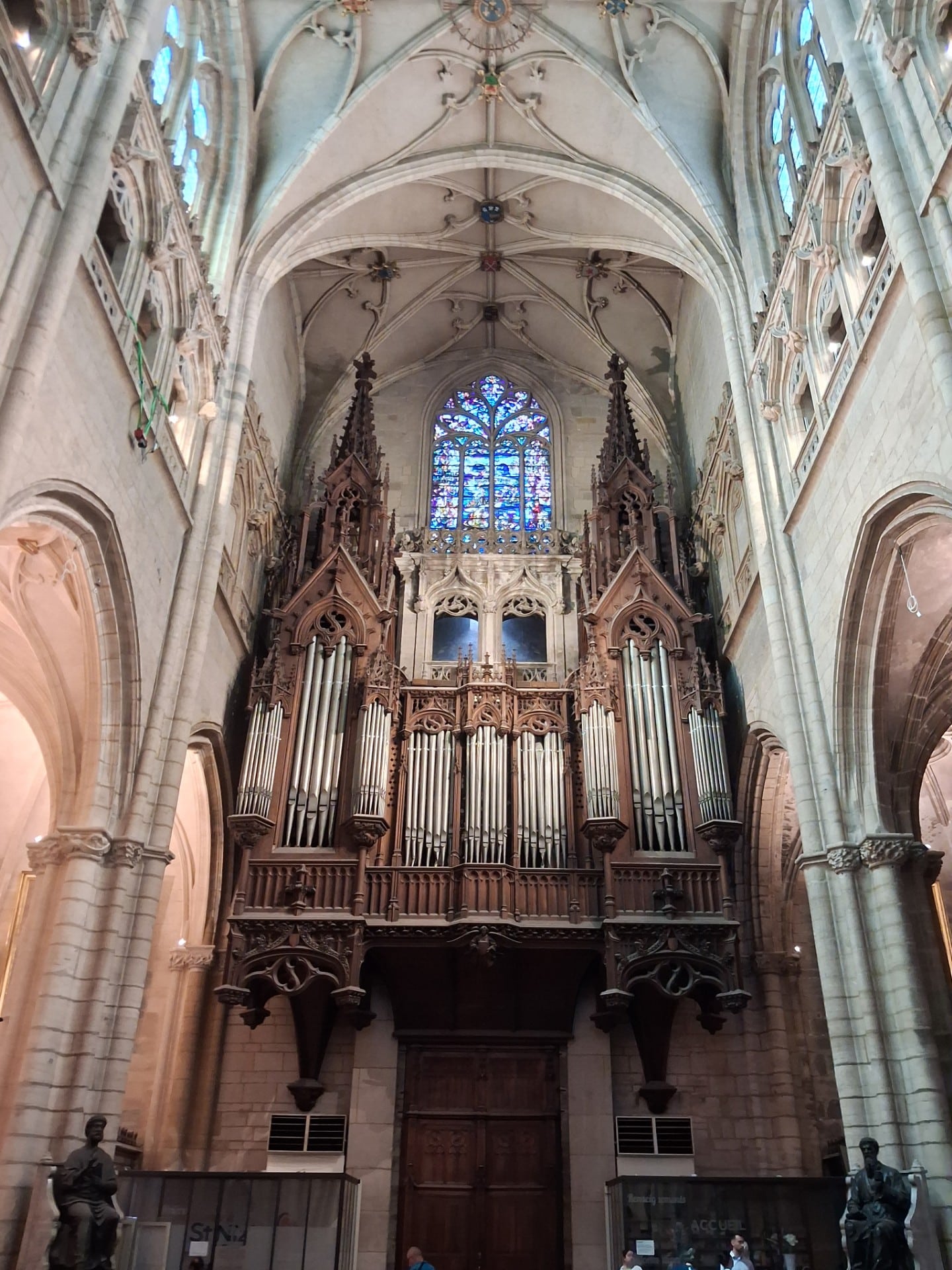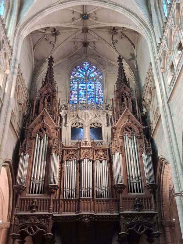 POSITIF: Bourdon 16, Montre 8, Bourdon 8, Salicional 8, Flûte harmonique 8, Gambe 8, Voix céleste 8, Flûte octaviante 4, Fourniture III, Trompette 8, RÉCIT EXPRESSIF: Flûte harmonique 8, Rohrflöte 8, Gemshorn 8, Gambe 8, Voix céleste 8, Flûte octaviante 4, Octavin 2, Trompette 8, Basson-hautbois 8, Clarinette 8, Voix humaine 8, Cornet V, Clochette.