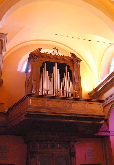 Grande Organo: Bordone 16′, Principale 8′, Flauto 8′, Ottava 4′, Flauto Camino 4′, Decimaquinta 2′, Ripieno 4 file, Tromba Armonica 8′, Voce Umana 8′.