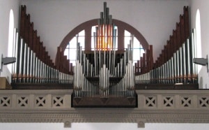 SCHWELLWERK (C-g3): 56 TOETSEN Holzflöte 8′, Salicional 8′, Principal 4′, Quintadena 4′, Schwegel 2′, Sesquialtera 2 fach, Scharff 4-5 fach, Dulcian 16′, Schalmey 8′, Tremulant.