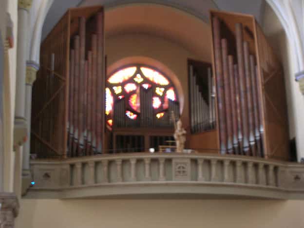 III. SCHWELLPOSITIV: C – g3 (56 TOETSEN) Holzflöte 8′, Salicional 8′, Principal 4′, Singend Gedackt 4′, Nasard 2 2/3′, Suavial 2′, Terz 1 3/5′, Echomixtur 4 fach, Schalmey-Oboe 8′, Tremolo.