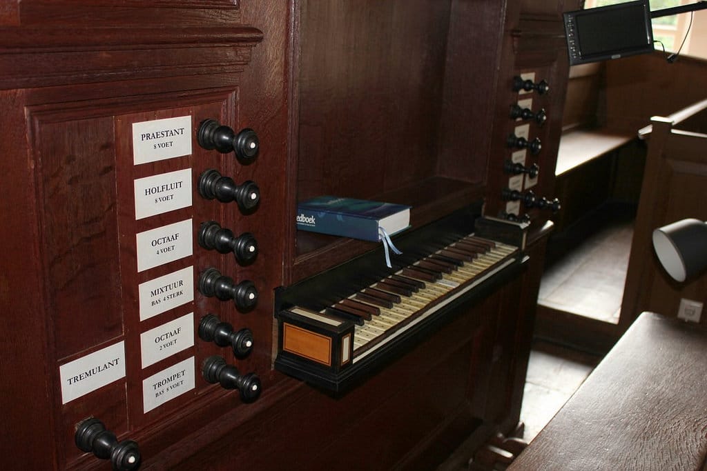 Manuaal: Quintadena 16′ – 2015, Praestant 8′, Holfluit 8′, Octaaf 4′, Speelfluit 4′, Quint 3′, Octaaf 2′, Mixtuur V-VI sterk (1 1/3′) (gedeeld), Trompet 8′ (gedeeld).