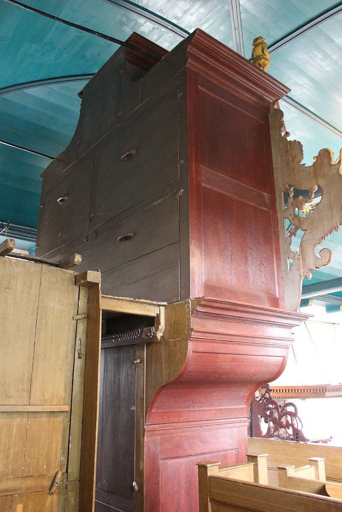 - In 1869 bleek dat het oude pijpwerk van Sieburg door het hoge loodgehalte flink was beschadigd door het stemmen. Ook waren pijpen door de voeten gezakt. Roelf Meyer verrichtte de herstelling in augustus 1870. Het orgel is daarna nooit meer gewijzigd, maar ook vrijwel niet onderhouden. In 1976 bleek het pijpwerk er nog precies zo bij te staan als in 1870. Wel is tijdens de Tweede Wereldoorlog door Flentrop een windmotor geplaatst. De tremulant is verdwenen, en de afsluiting is buiten werking gesteld. De registerplaatjes zijn niet van Hinsz, maar uit de tijd van Lohman. De klaviatuur is echter wel van Hinsz. Flentrop plaatste pas in 1970 een windmotor.