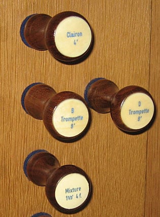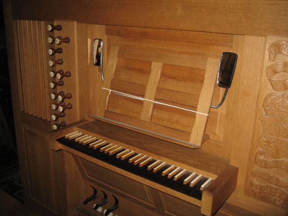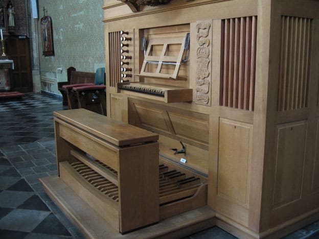 De dispositie van het Heinz Wilbrand-orgel: 1980, met 18e eeuws pijpwerk, gemaakt in een biechtstoel uit 1788. Deze werd vervaardigd door Lambert Schepers.