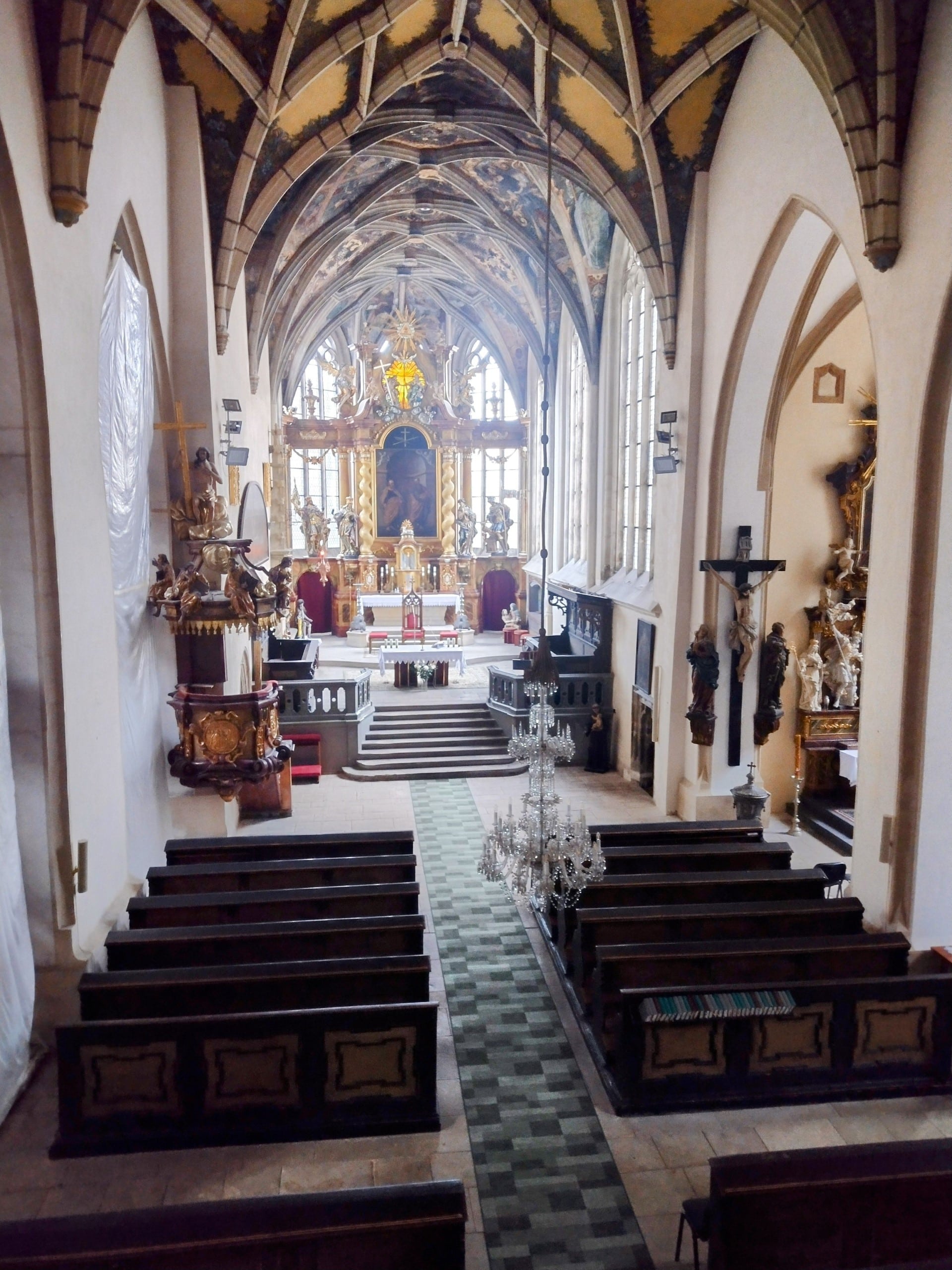 In 1711-1713 bouwde Johann Anton Krásný hier een nieuw orgel met negentien stemmen. In 1753 voegde Jacob Spiegel er een rugpositief aan toe, dat aanvankelijk twee registers had. In 1762 werden daaraan nog twee registers toegevoegd. Josef Prediger breidde het orgel in 1872 uit tot 21 registers.In 1898 werd het orgel afgebroken, in afwachting van een nieuw, groter orgel dat er nooit kwam. In arren moede werd daarom in 1903 een klein nieuw orgel geplaatst, dat tot 2013 dienst deed. Gelukkig bleef het bovenste deel van de kast van het hoofdwerk samen met de frontpijpen bewaard in het plaatselijke museum.Vanaf 2004 werden plannen gemaakt om met dit schaarse materiaal als basis een nieuw orgel in de stijl van het Boheemse barokorgel te realiseren. Dat werd in 2013-2014 gebouwd door de firma Kánský & Brachtl te Krnov/Jágerndorf. Op 23 november 2014 is het ingewijd.
