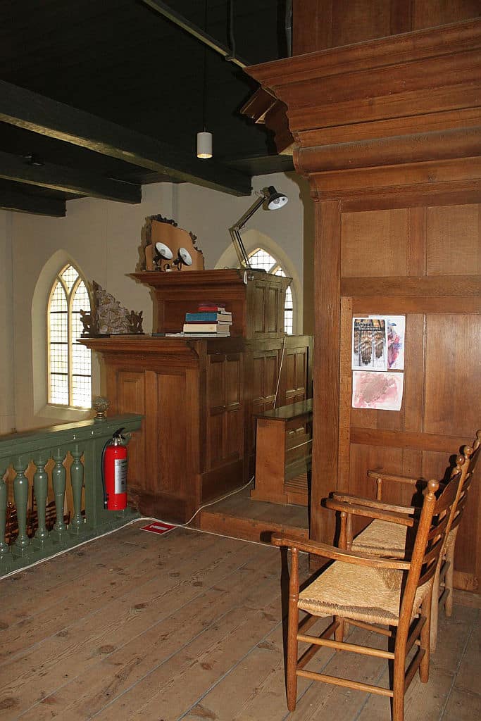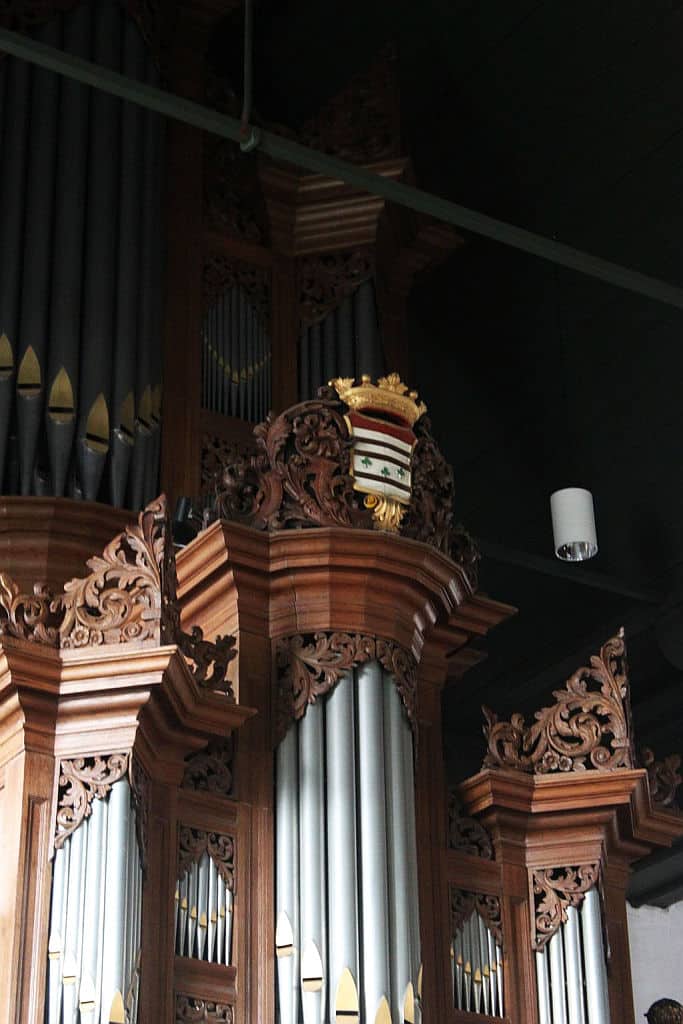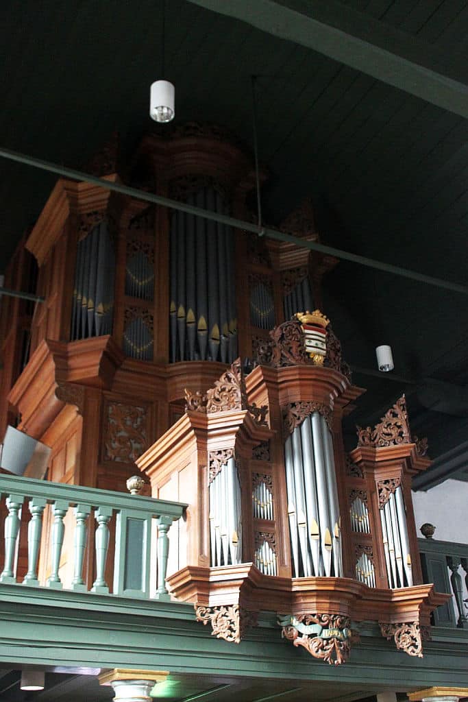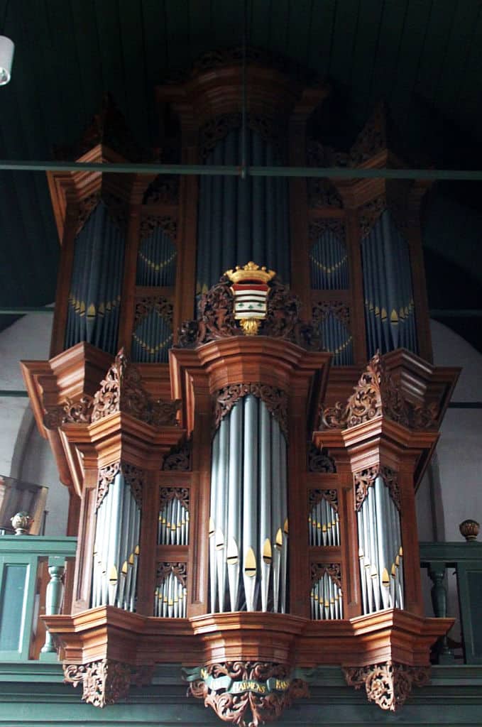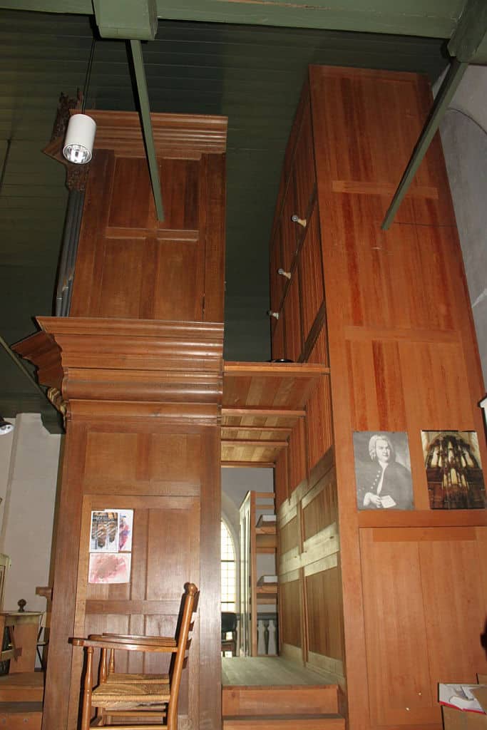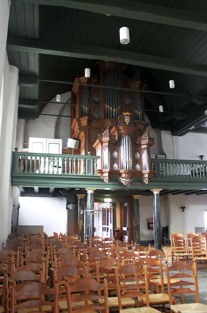 RUGWERK: C – f3 (54 TOETSEN) Holpijp 8′, Prestant 4′, Open Fluit 4′, Fluit Quint 3′, Octaaf 2′ – 1716/1967, Woudfluit 2′, Quint 1 1/3′, Sesquialter II sterk (1 1/3′) – 1716/1967, Scherp IV sterk (1′) – 1867, Dulciaan 8′ – 1722, Tremulant.