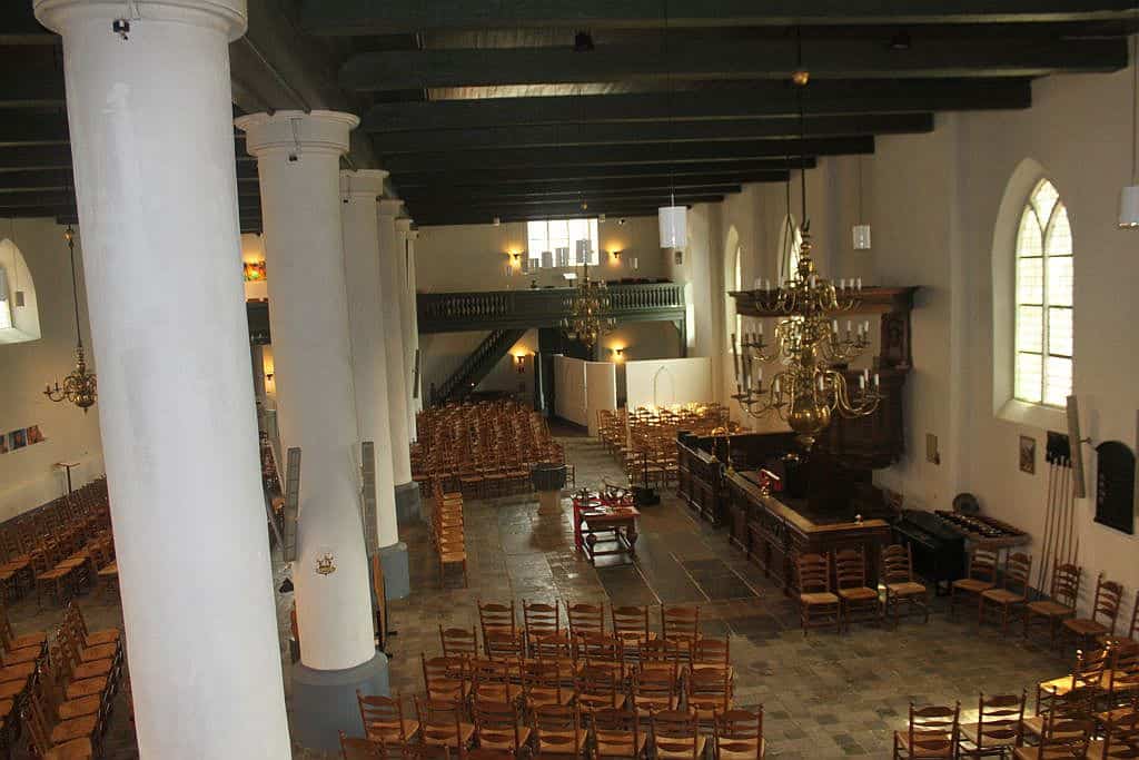 HOOFDWERK: C – f3 54 TOETSEN) Prestant 8′, Holpijp 8′, Quintadeen 8′, Octaaf 4′, Openfluit 4′, Nasard 3′, Octaaf 2′, Ruispijp II sterk (2′), Mixtuur III sterk (1′), Cymbel VI sterk (2/3′), Dulciaan 16′, Trompet 8′ – 1716/1722.