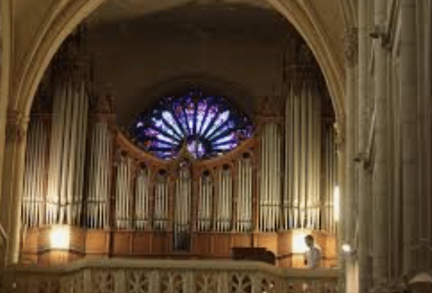 MANUAL III (EXPRESIVO) (C – a3) 58 TOETSEN: Bourdon 16′, Prinzipal de Corno 8′, Flauta de Punta 8′, Unda Maris 8′, Flauta de Solo 8′, Bourdon Amabile 8′, Praestant 4′, Flauta Jubal 4′, Flauta de Block 4′, Quinta a Chimenea 2 2/3′, Tibia Silvestris 2′, Tercia 1 3/5′, Acuta 3-4 fach (1 1/3′), Trompeta 16′, Tuba Mirabilis 8′, Clarinete 8′, Oboé 8′, Tremolo, Campanas de Catedral, Arpa Americana – transmissie.
