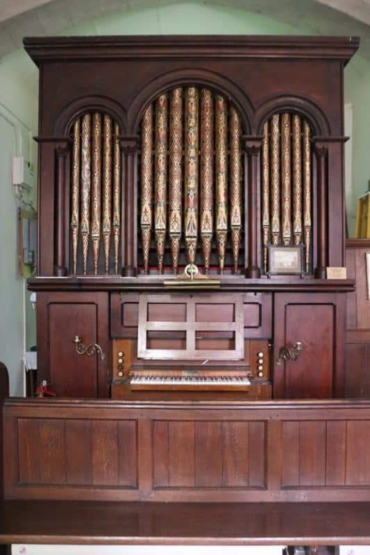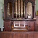 Manual: C – f3 (in zwelkast) Open Diapason 8′ TC, Stopped Diapason Bass 8′ (niet in zwelkast), Stopped Diapason Treble 8′ TC, Dulciana 8′ TC,Principal 4′, Fifteenth 2′, Blank (lege plaats.