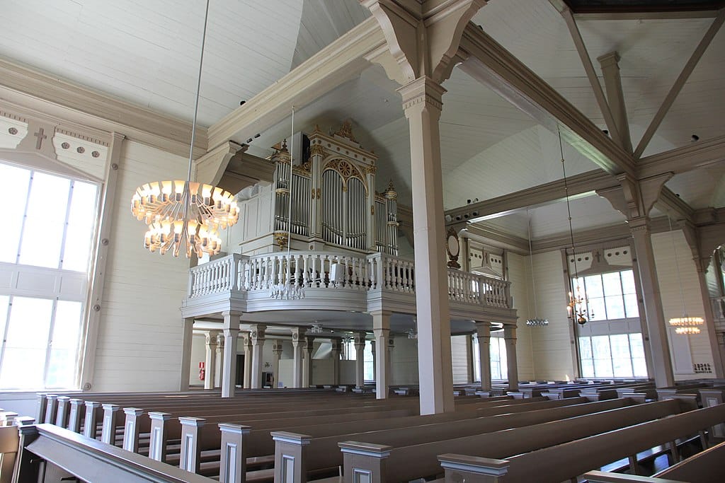 I HV: Principal 16′, Octava 8′, Flauto 8′ (Siikaisten uruista 1904), Fugara 8′ (ent. Gemshorn, 1929), Octava 4′, Spetsflöjt 4′, Quinta 2⅔′, Octava 2′, Cornet 5x (c0–), Mixtur 5x, Trumpet 16′, Trumpet 8′, II–I, III–I.
