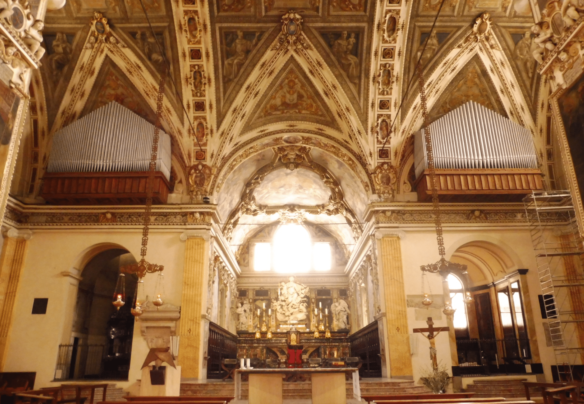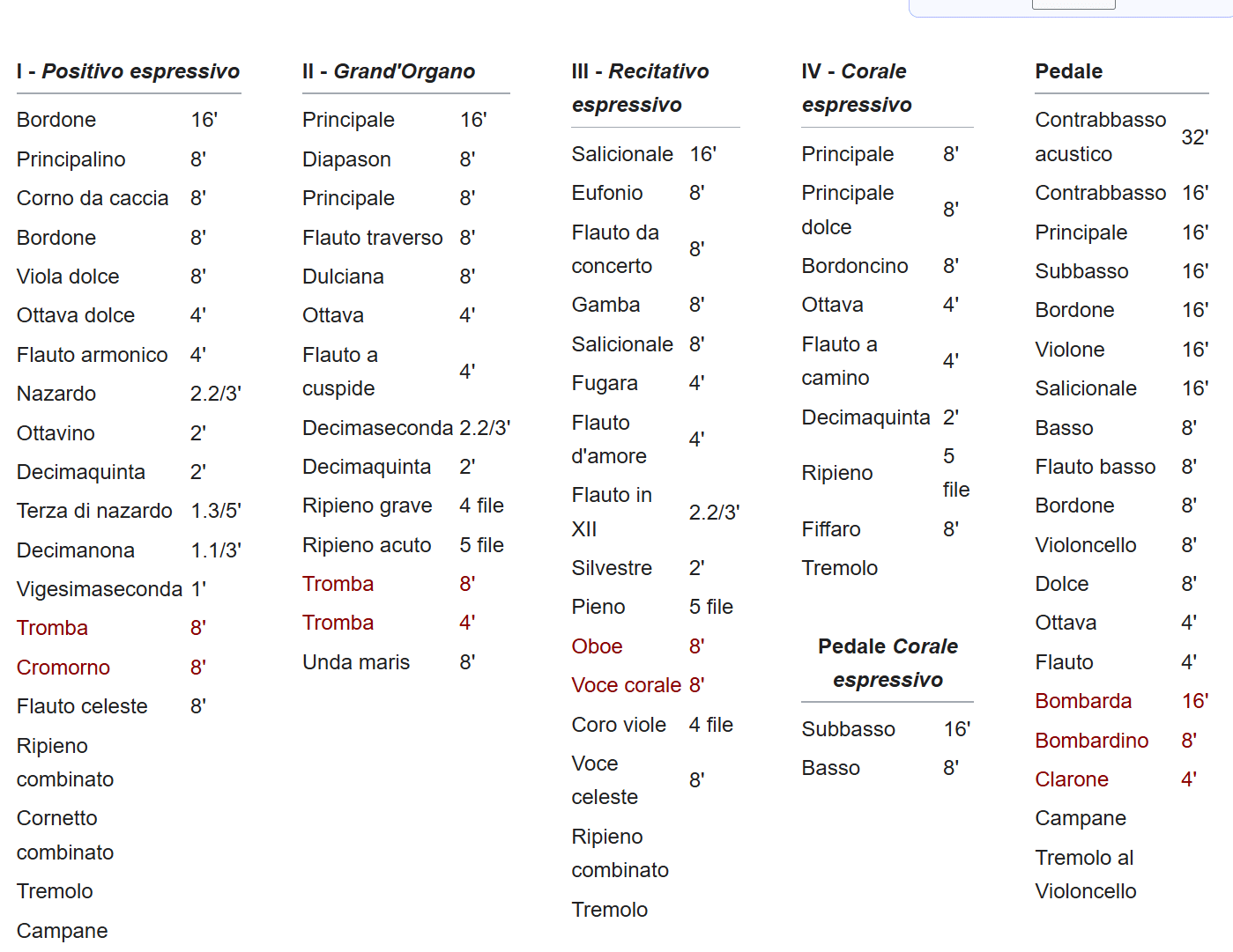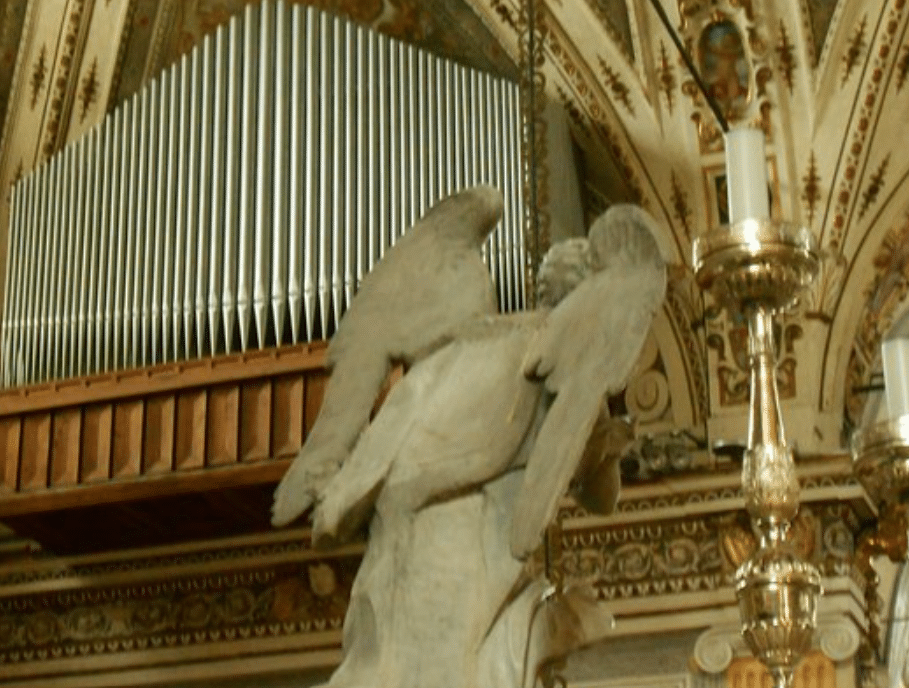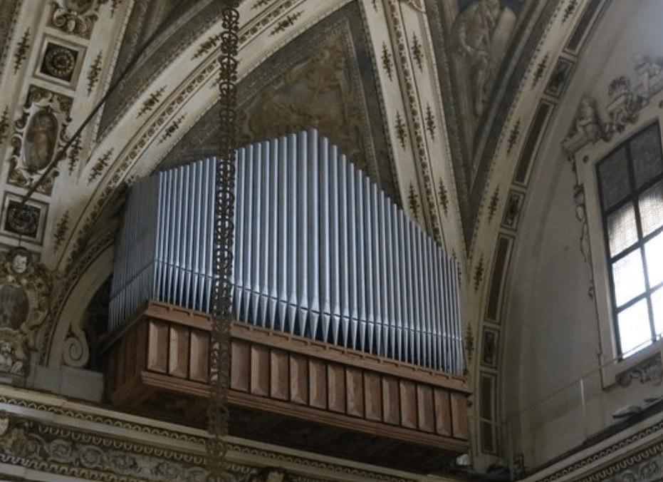 Giovanni Tamburini bouwde in 1957 opus 372. Een nieuw sleepladen-orgel met elektrische tractuur, circa 4600 pijpen, 76 stemmen, 4 manualen en een vrij pedaal voor de Chiesa di Sant’Angelo in Milano (Milaan) Italië. Het pedaalklavier is concaaf.