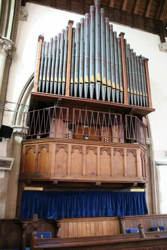 GREAT (C – g3) 56 TOETSEN: Open Diapason 8′, Stopped Diapason Bass 8′, Clarabella 8′, Dulciana 8′, Principal 4′, Flute Harmonique 4′, Fifteenth 2′, Mixture 3 ranks (17.19.22) – 1995, Trumpet 8′, Clarionet 8′.