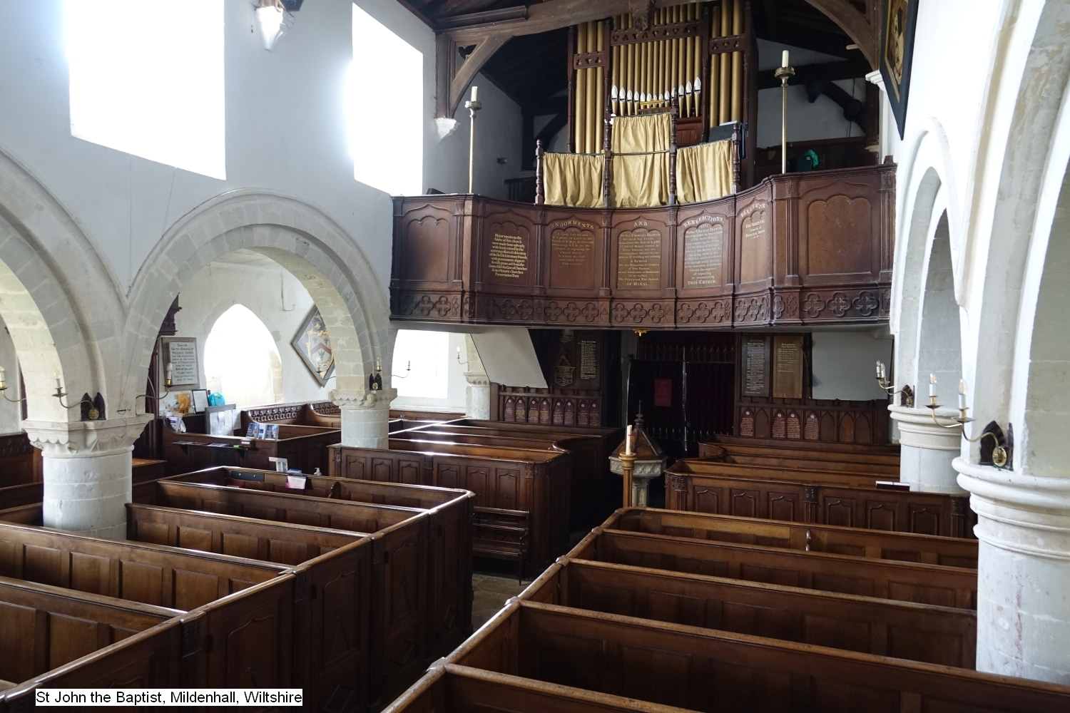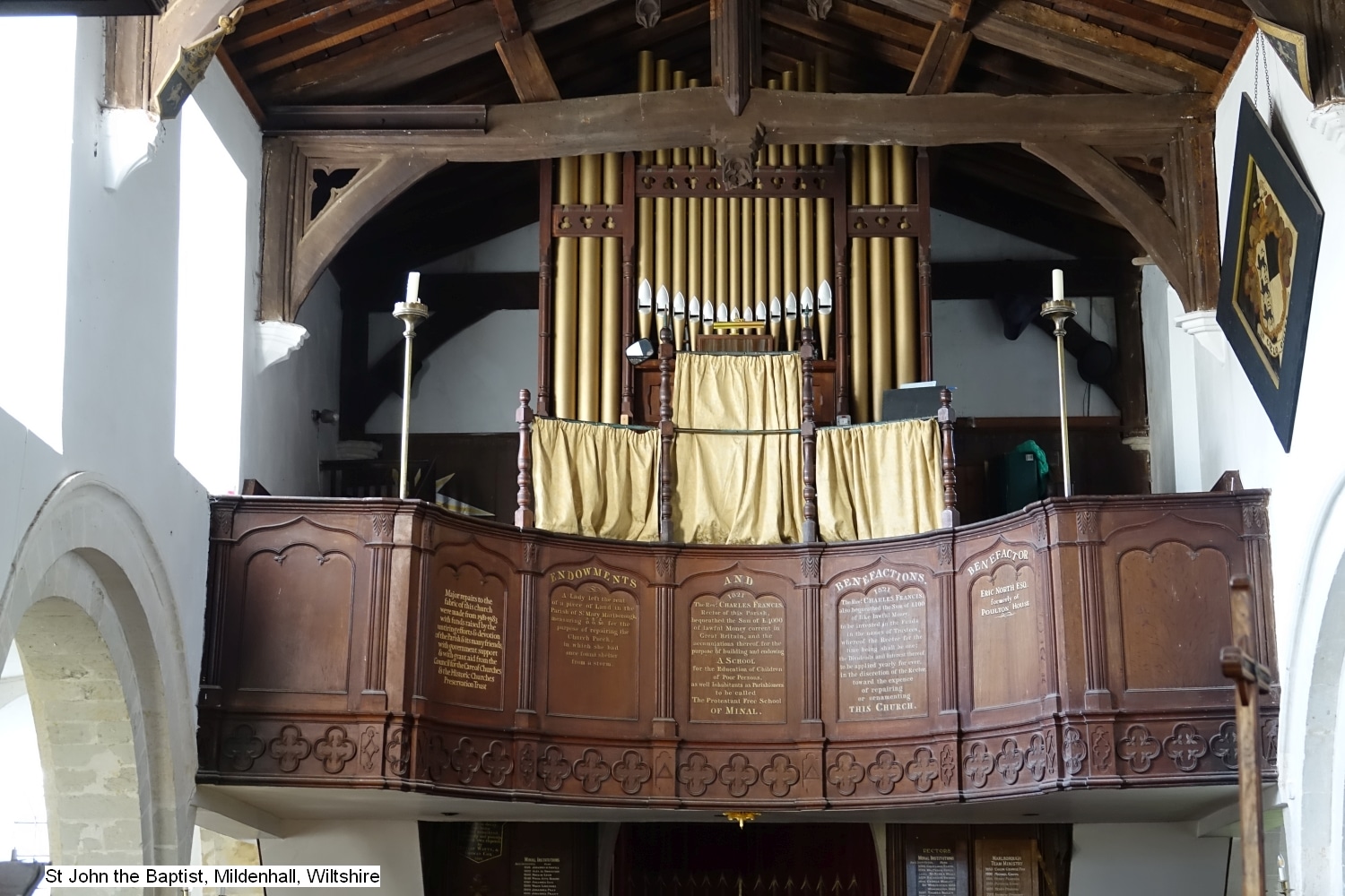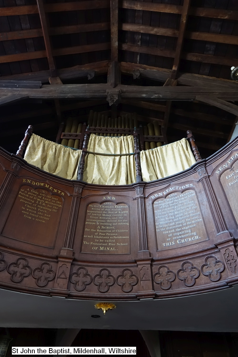 In 1894 bouwde Henry Jones & Sons uit South Kensington een nieuw mechanisch sleepladen-orgel voor de Church of Saint John the Baptist in Mildenhall (Wiltshire) UK. John Conyers uit Buckingham bouwde het instrument in 1965 om. In 1996 voerde Stephen Cooke uit Bratton een restauratie uit. Het orgel heeft 8 stemmen, 2 manualen en een vrij pedaal. Het pedaalklavier is concaaf en er zijn geen tongwerken gedisponeerd. De stemmingstemperatuur is gelijkzwevend.