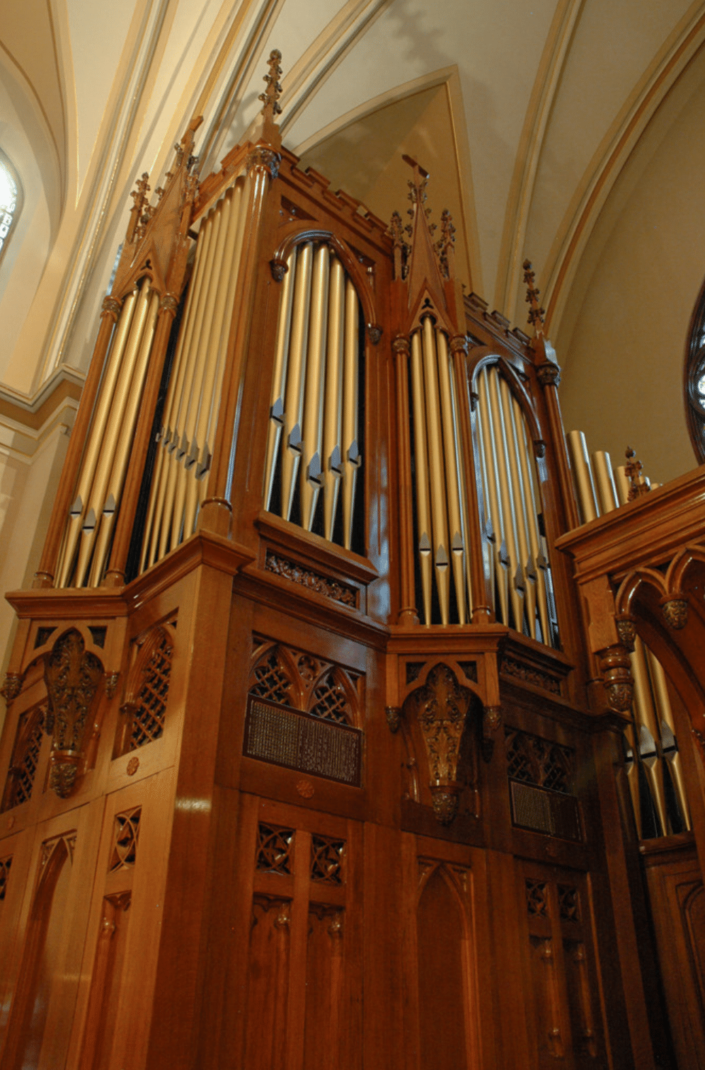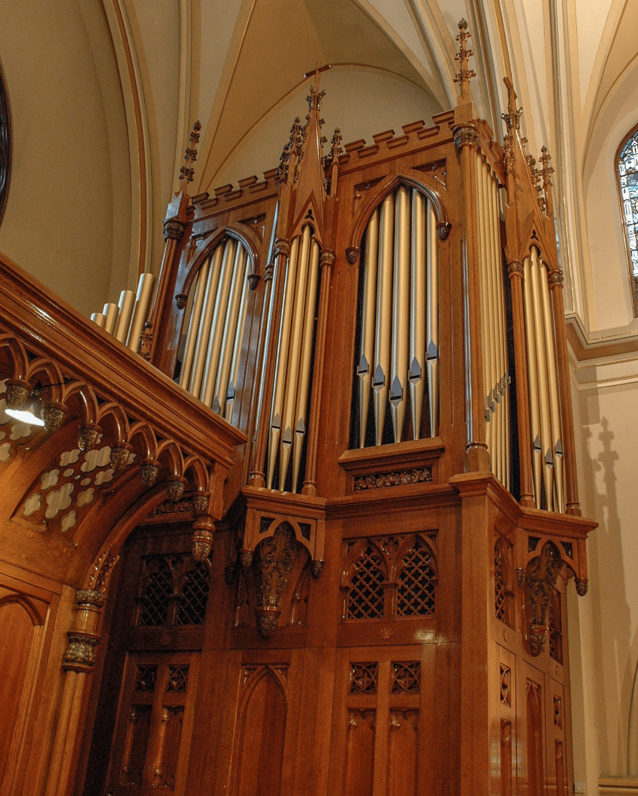Echo Manual: Diapason 8′, Viole Sordine 8′, Voix Angelique 8′, Cor de Nuit 8′, Flûte Conique 8′, Flûte Céleste 8′ (from g°), Principal 4′, Chimney Flute 4′, Voix Humaine 8′, Tremulant.
