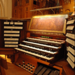 CHOIR (C – c4) 61 TOETSEN: Dulciana 16′, Viole Diapason 8′, Gambe 8′, Gambe Celeste 8′, Flûte Ouverte 8′, Flûte Céleste 8′ (TC), Bourdon 8′, Dulciana 8′ – extension, Unda Maris 8′, Principal 4′, Flûte Traversière 4′, Flûte à Fuseau 4′, Nasard 2 2/3′, Octavin 2′, Tierce 1 3/5′, Quinte 1 1/3′, Septième 1 1/7′, Fife 1′, Neuvième 8/9′, Fourniture 4 ranks (1 1/3′), Cymbale 3 ranks (2/3′), Trompette 8′, Clairon 4′, Clarinet 8′, Tremulant, Trompette d’Orchestre 8′ – from Tromba.