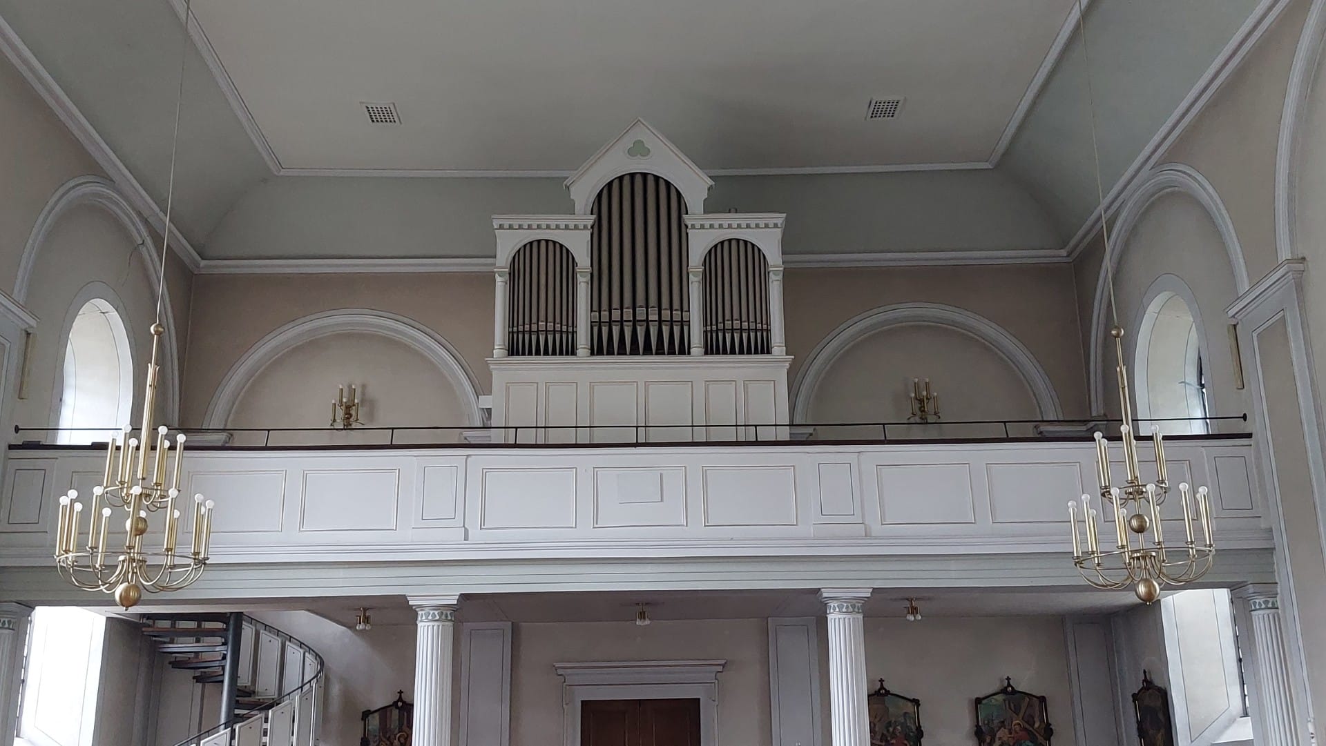 MANUAL (C – f3) 54 TOETSEN: Bourdon 16′, Principal 8′, Gamba 8′, Dolce 8′, Holflöte 8′, Octav 4′, Flöte 4′, Octav 2′, Mixtur 3 fach, Trompete 8′ (B/D).