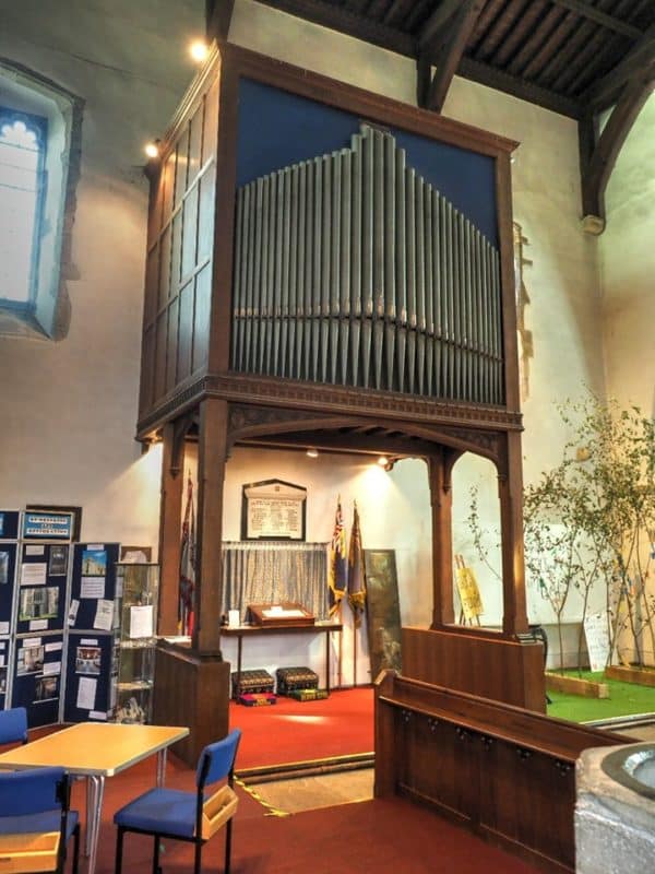 Great: C – c4 Open Diapason 8′, Flute Triangulaire 8′ Wood, Dulciana 8′, Principal 4′.