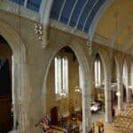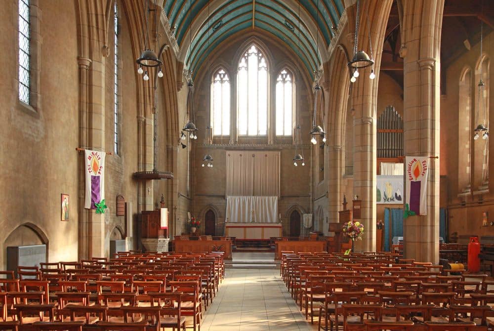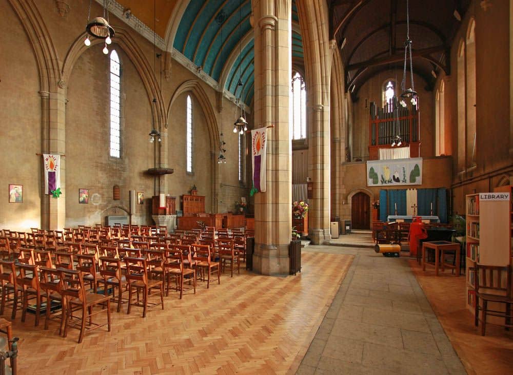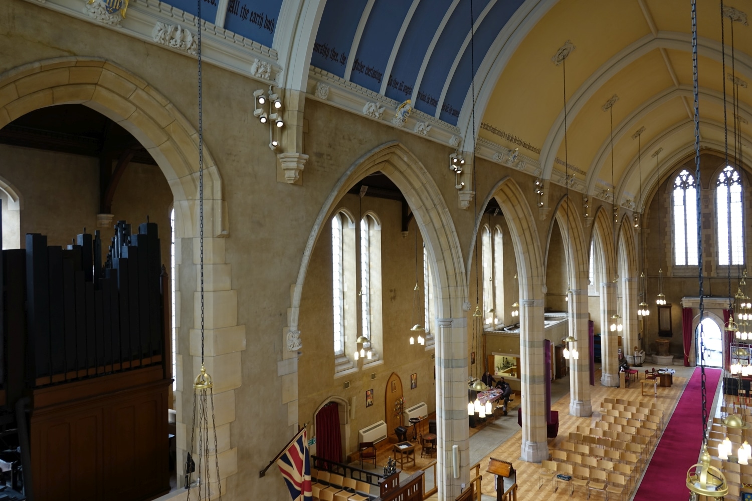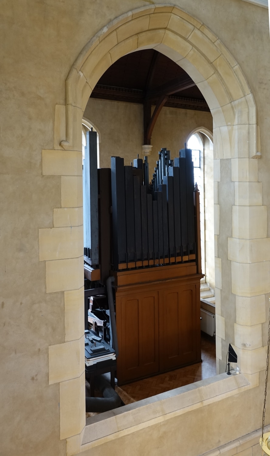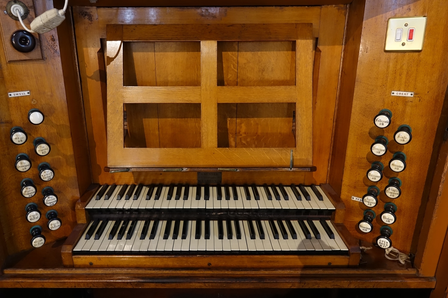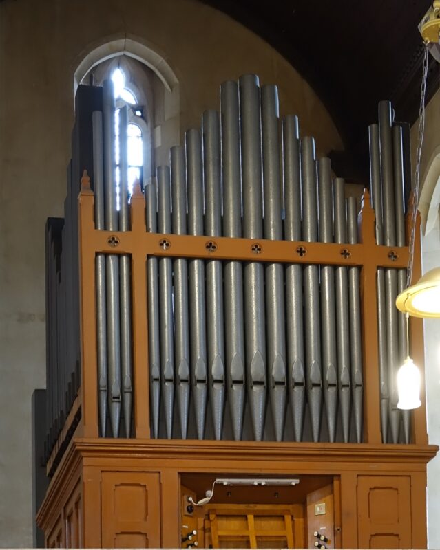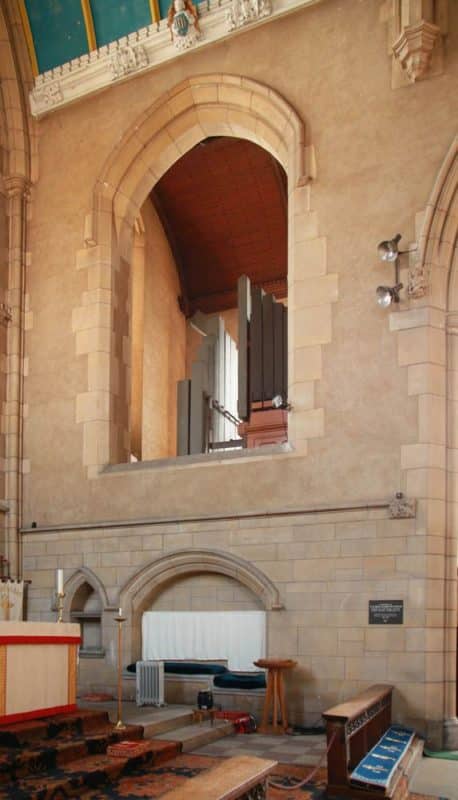 GREAT ORGAN: Open Diapason 8′, Stopped Diapason 8′, Gamba 8′, Dulciana 8′, Principal 4′, Flute 4′, Fifteenth 2′.