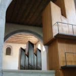 POSITIV (C-a3): 58 TOETSEN Rohrflöte 8′, Quintade 8′, Principal 4′, Holztraverse 4′, Waldflöte 2′, Quinte 1 1/3′, Sesquialter 1-3 fach (2 2/3’+1 3/5’+1 7/9′)), Scharff 5 fach (1′), Dulcian 16′, Schalmey 8′, Tremulant.