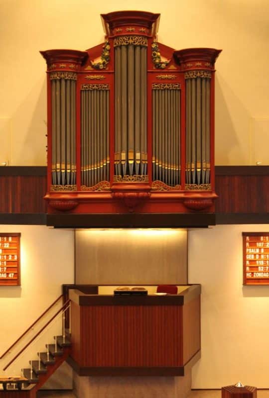 Nevenwerk: C – f3 Holpijp 8′, Prestant 4′, Roerfluit 4′, Gemshoorn 2′, Dulciaan 8′ – 1975, Tremulant.