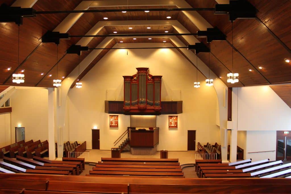 Hoofdwerk: C – f3 Prestant 8′, Quintadeen 8′, Octaaf 4′, Quint 2 2/3′, Octaaf 2′, Mixtuur IV sterk, Cornet IV sterk (discant), Trompet 8′ – 1975.